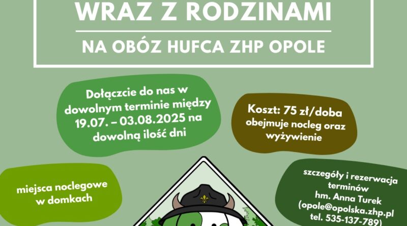 Read MoreCzuwaj! Niniejszym serdecznie zapraszamy Instruktorów Hufca Opole, wraz z rodzinami, do odwiedzin obozu w Krówce Leśnej! Szczegóły prezentujemy na poniższej